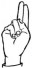 На ћирилици написано КОСТАДИН КОВАЧЕВИЋ састоји се из 17 слова [?]. Исписано ћириличном једноручном азбуком за глувонеме: